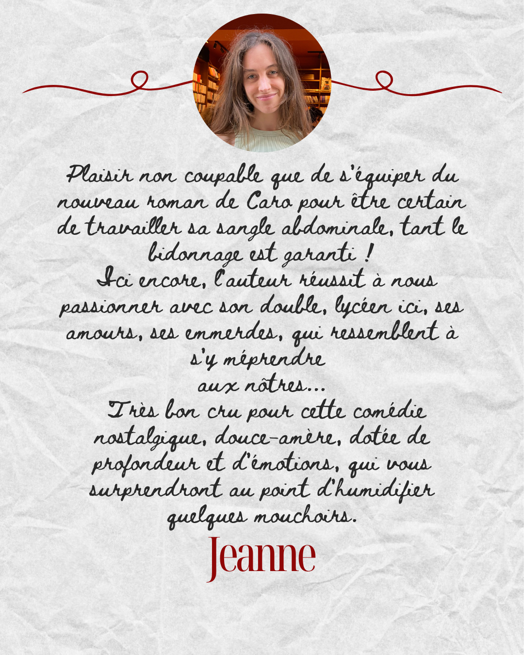 Résumé de l’éditeur : L'année du Bac, la meilleure période de notre vie en même temps que la pire. « Je m'étais façonné un faux moi intégralement taillé pour lui plaire. Elle avait adoré Le cercle des poètes disparus ? C'est dingue, c'était mon film culte. Elle aimait Sting et surtout son dernier album en date... Nothing Like the Sun ? Je vénérais cet album, de manière inconditionnelle. Elle admirait le chanteur pour son implication dans la défense de la forêt amazonienne aux côtés du chef Raoni ? J'étais à deux doigts de venir au lycée le lendemain avec un plateau de terre cuite coincé dans la lèvre inférieure... »