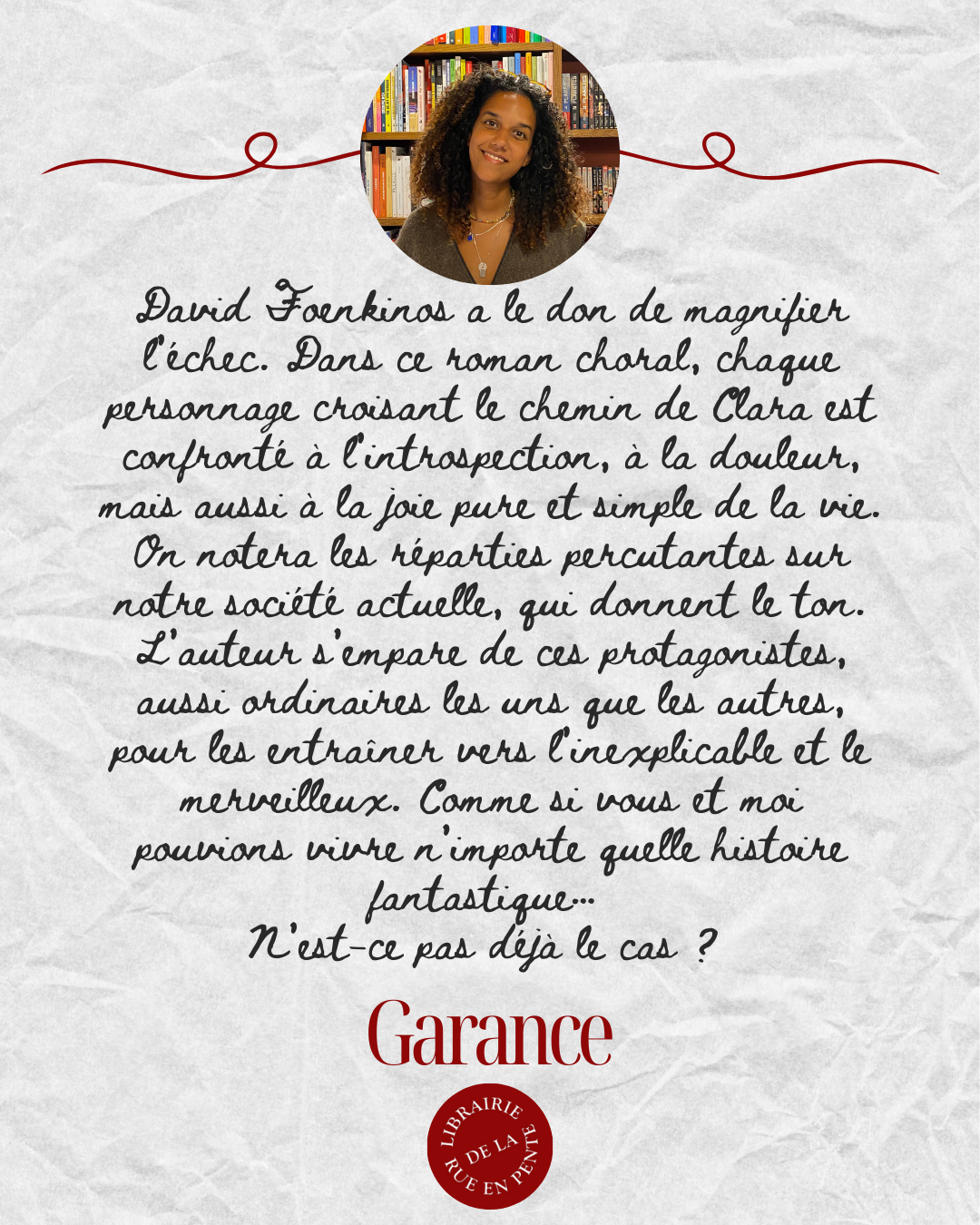Résumé de l’éditeur Clara voit au-delà des apparences. Ceux qui la connaissent la redoutent autant qu’ils l’admirent. Car elle ne prédit pas seulement l’avenir, elle l’éveille. Je le commande par ici