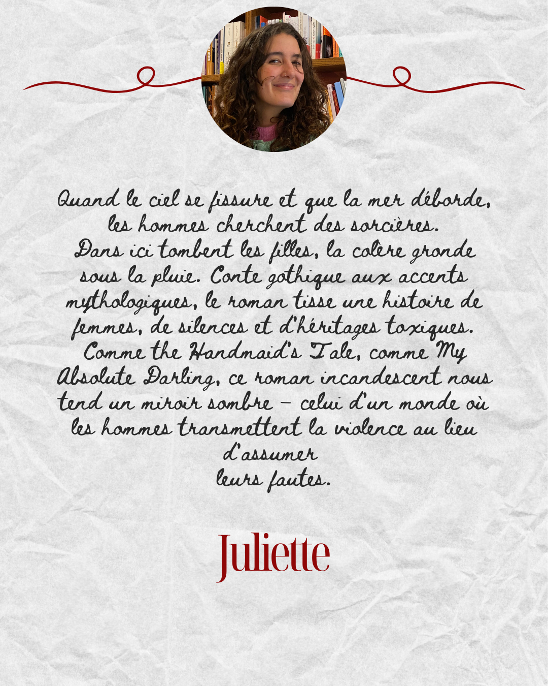 Conte horrifique, roman sur la cellule familiale, ses mensonges, ses legs impossibles et le sort réservé aux filles : ce premier livre aborde l'emprise avec une envoûtante maîtrise et tient son lecteur en haleine jusqu'à la dernière page.